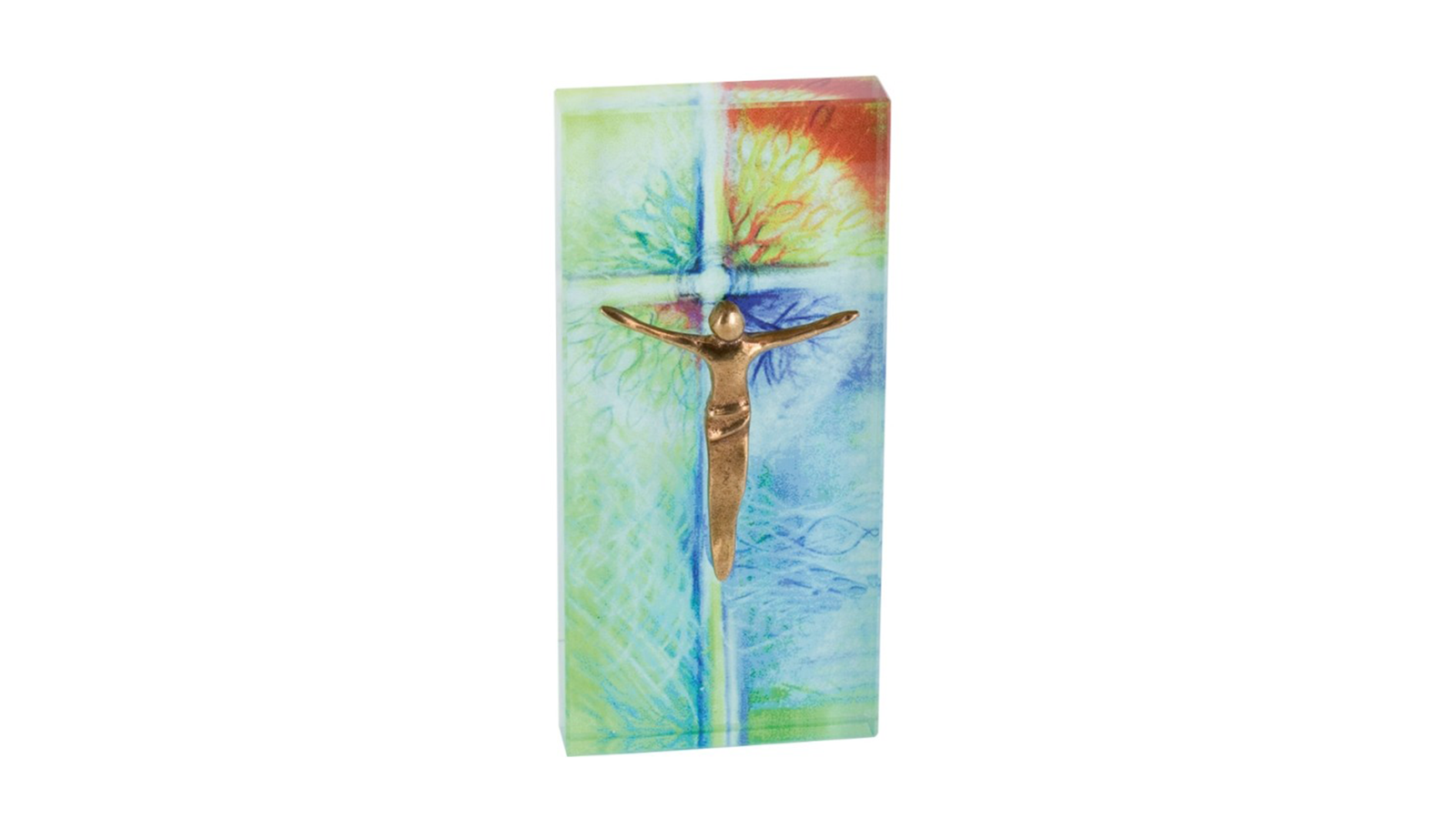 Relief en verre représentant une croix, aux couleurs vives, idéal pour les occasions festives, 6 x 13 cm, livré dans un emballage cadeau, avec dispositif d'accrochage.